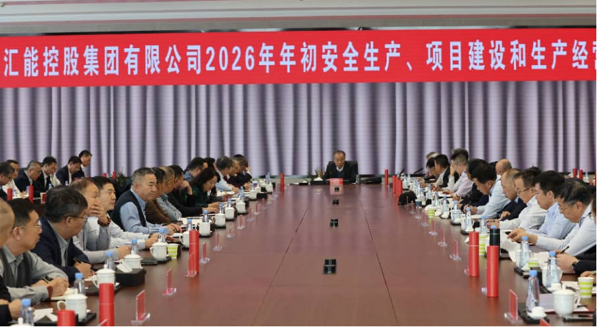 1月23日,汇能控股集团召开2026年年初安全生产、项目建设和生产经营调度会。集团公司领导,股东代表委员会、董事会成员,监事,集团所属各企业领导班子成员,集团机关各部室主管级以上管理人员,开远集团相关领导及所属3座煤矿领导班子成员参加了会议。会议听取了各企业2025工作总结和2026工作安排汇报,郭金树董事长通报了全集团 2025 年全年生产经营情况,安排部署了2026年重点工作。